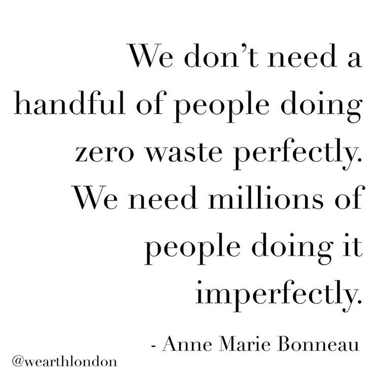 My belief is that it is infinitely better for everyone to make an effort to reduce their plastic waste as much as it is practical for them, rather than a few people to do it perfectly. It is very difficult to live fully ‘zero-waste’ in a modern world, so I will continue to make every effort to make the right choices all the times I can while living in an imperfect world. Easy first steps to take are choosing vegetables that aren’t wrapped in plastic, not buying fast-fashion, and to buy in bulk; for me that means at a zero-waste store (I’m a lucky Londoner).