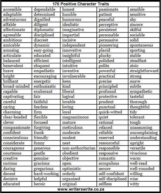 At the end you will have 8 carefully selected words that you identify with being part of your character.
